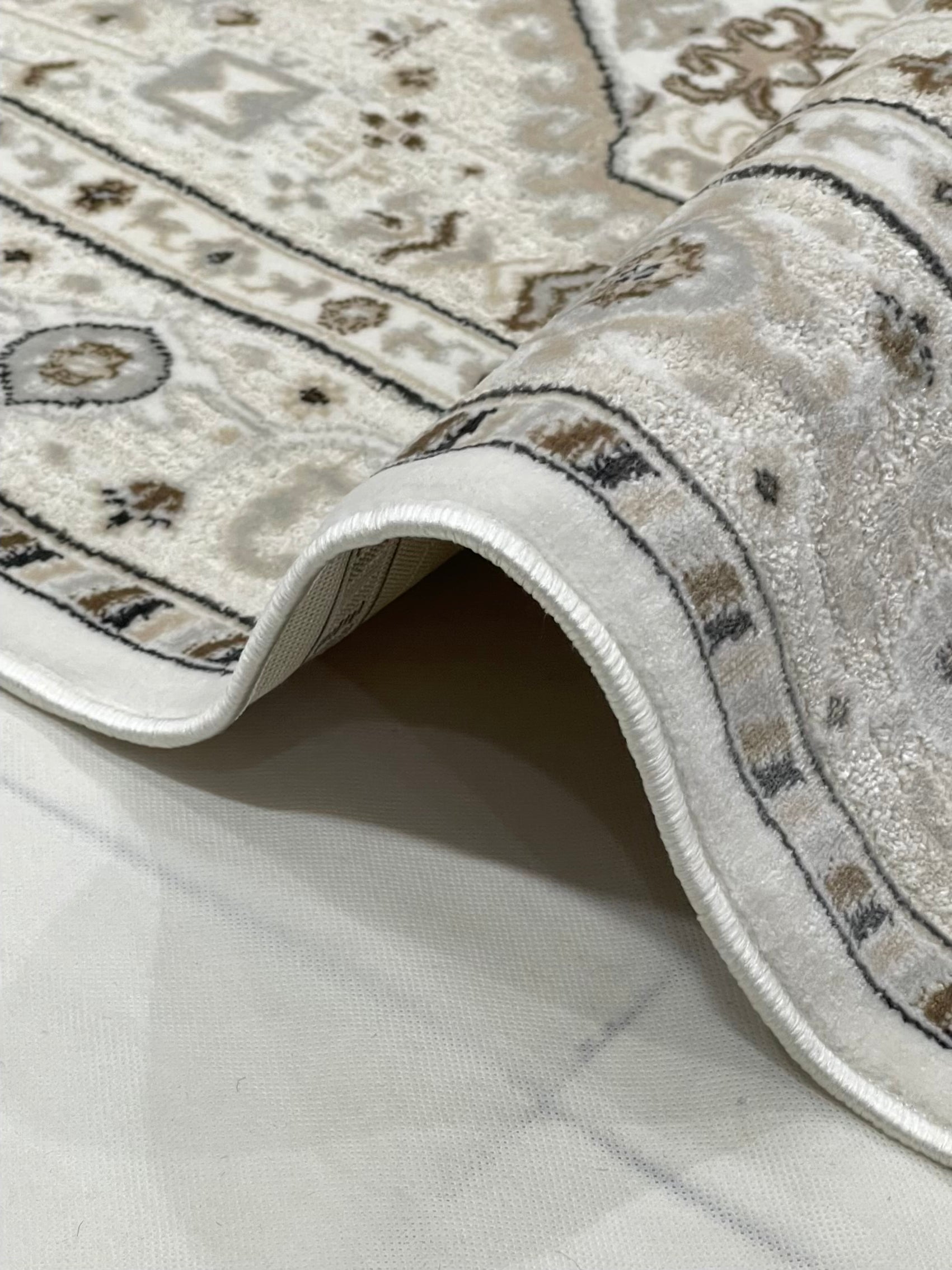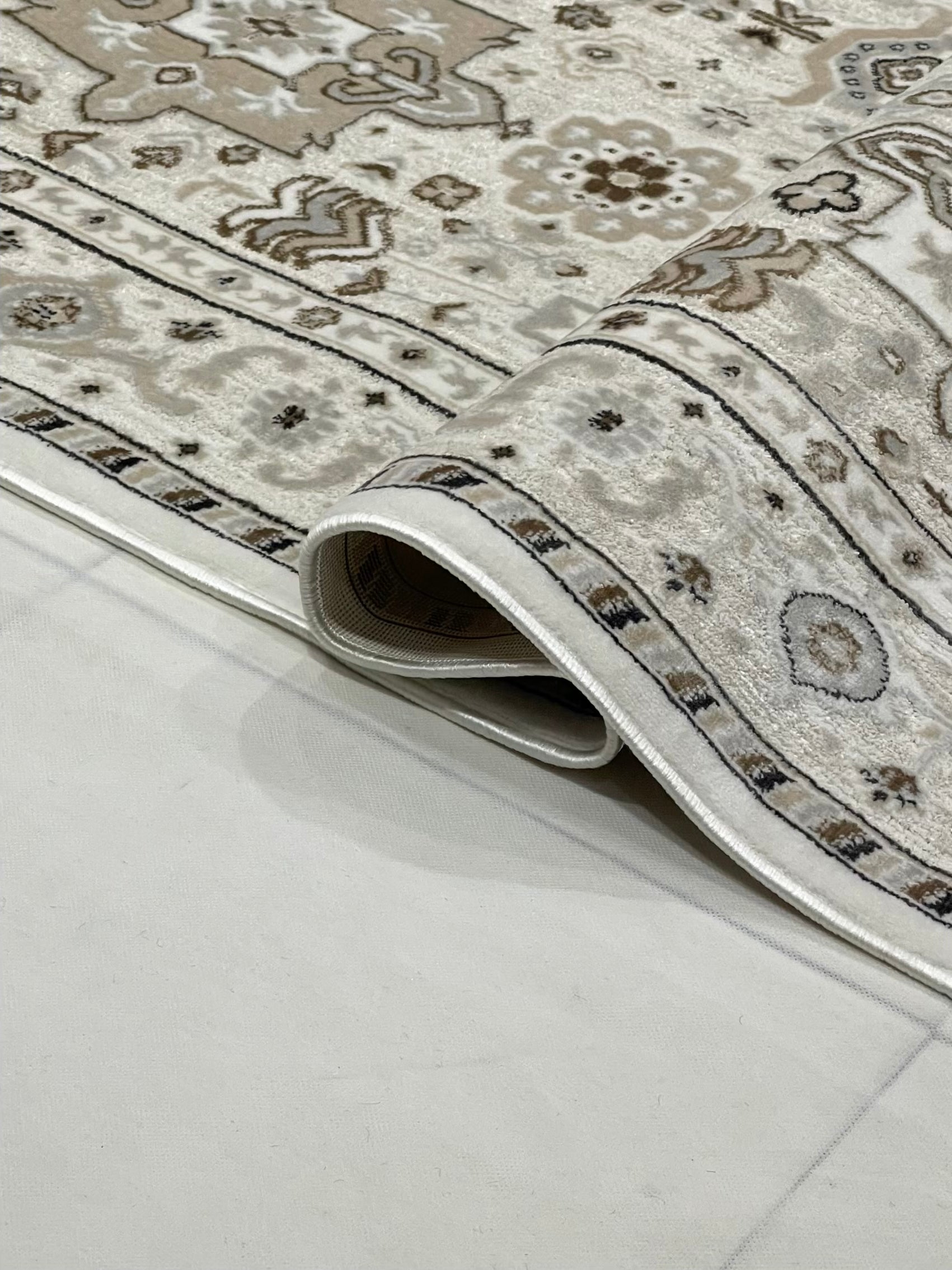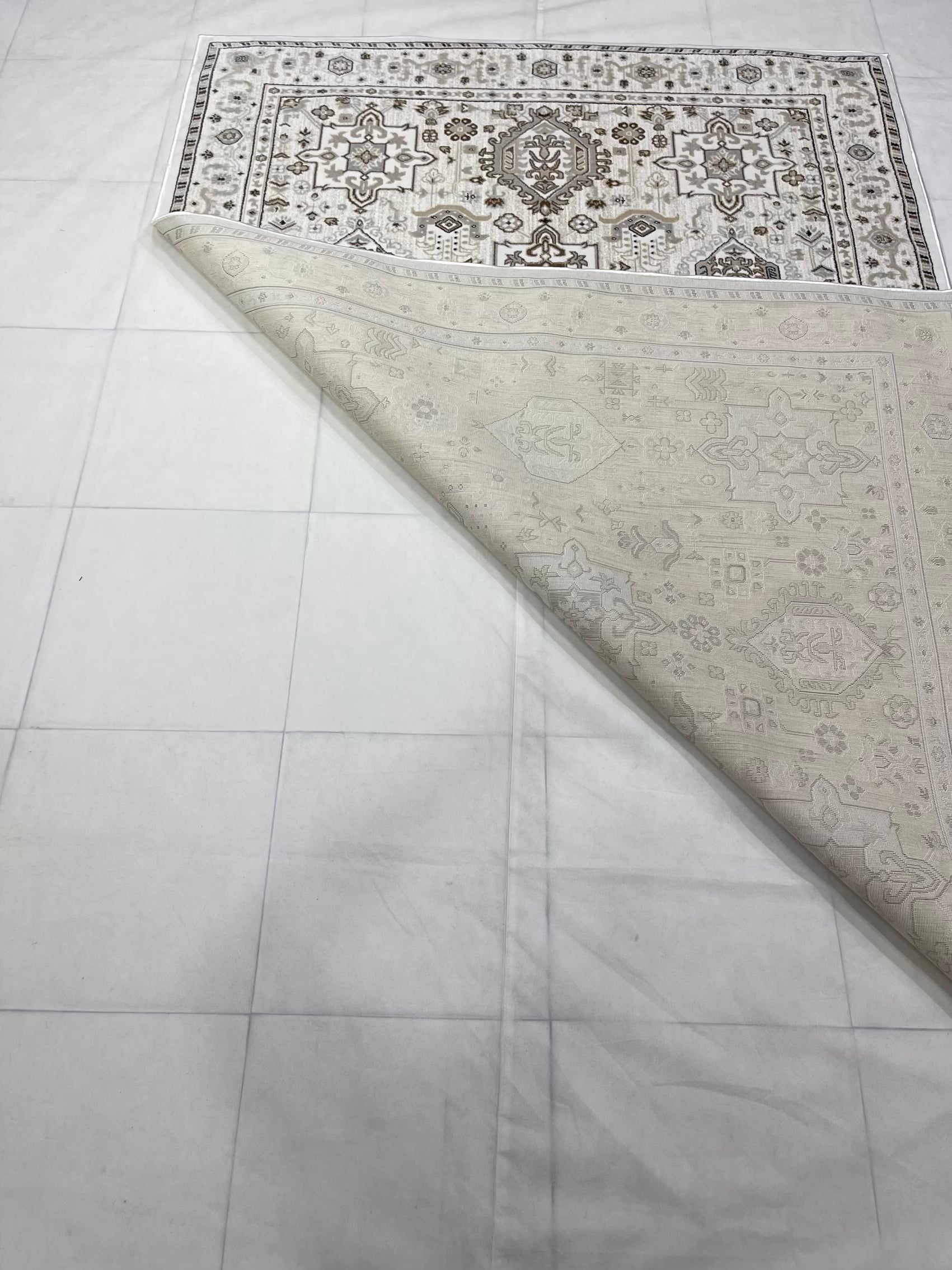 Modern Turkish Silk , Woven Back (Article-1306-Off white,Grey) Size : 5 ft width x 7.3 ft length