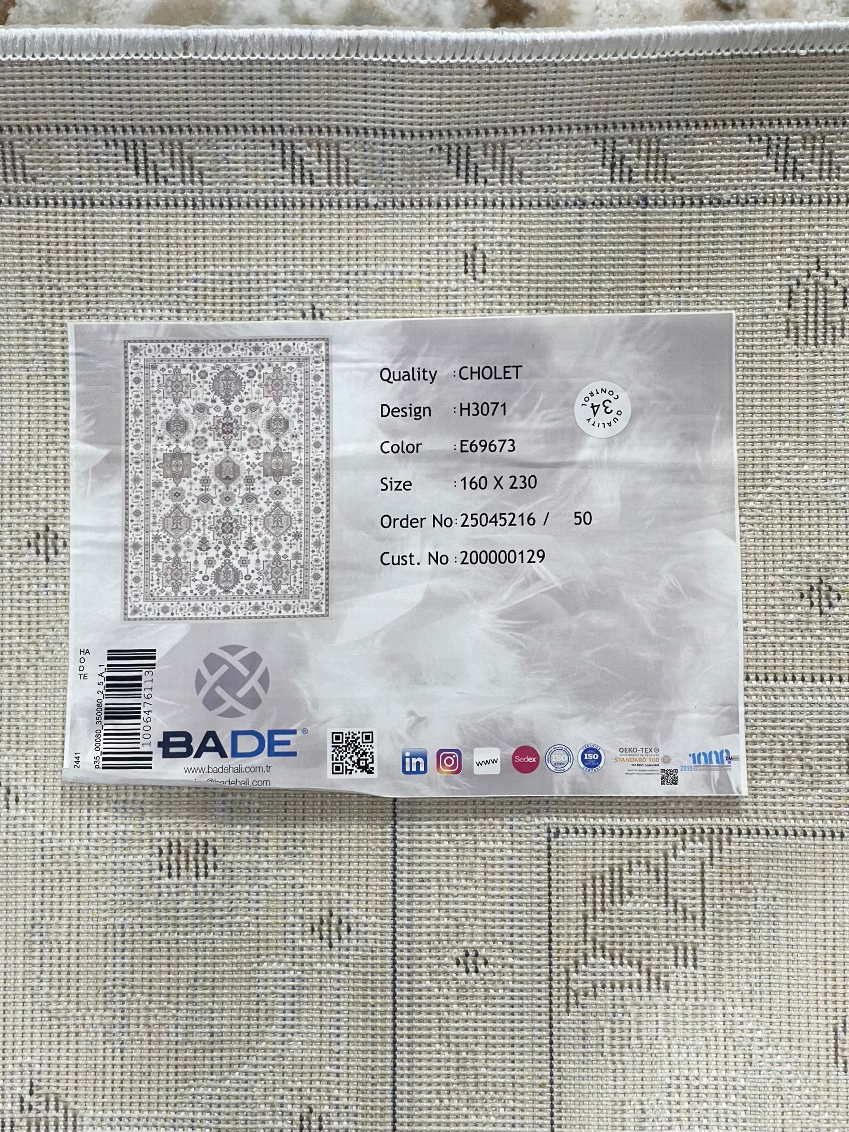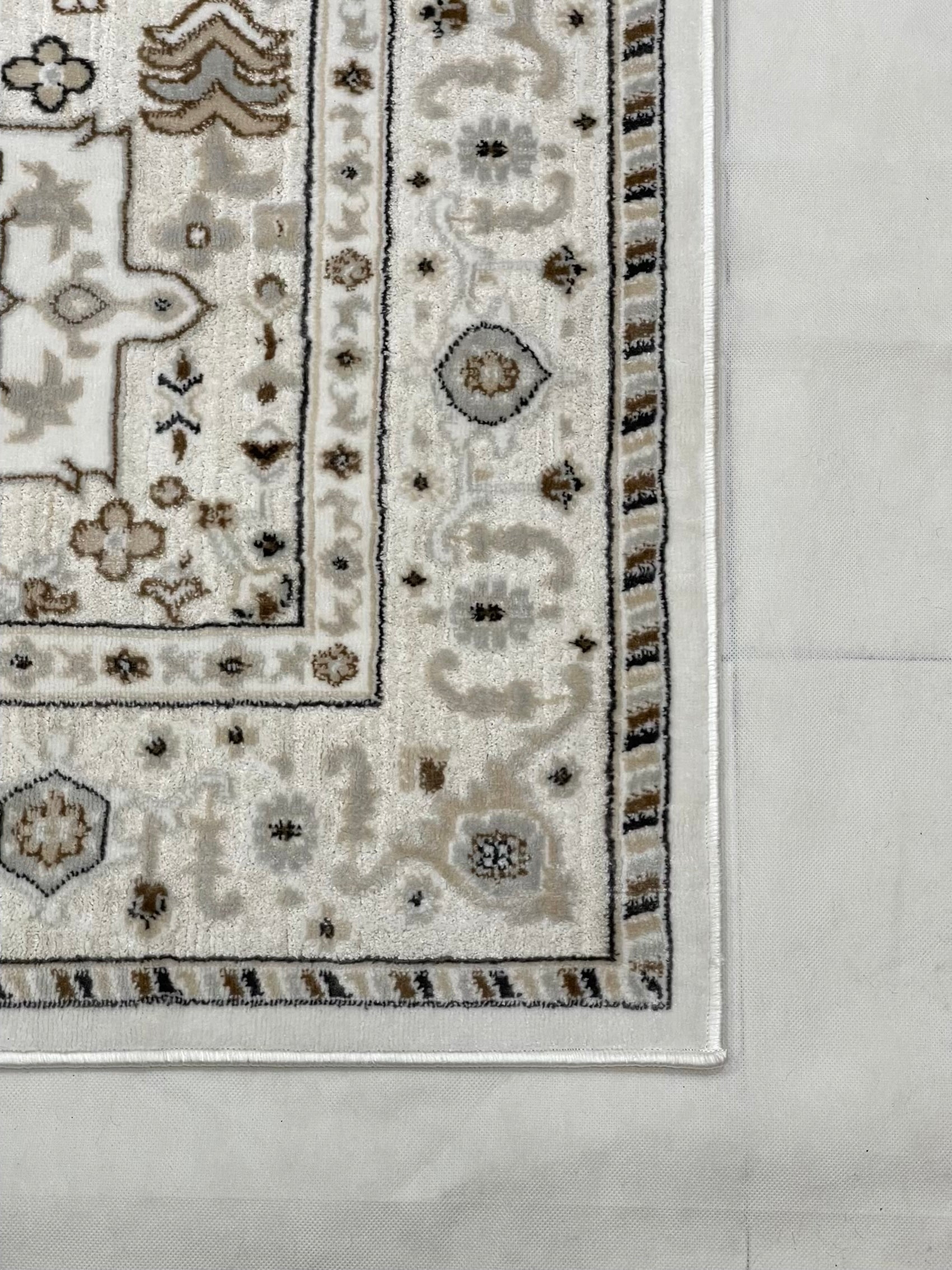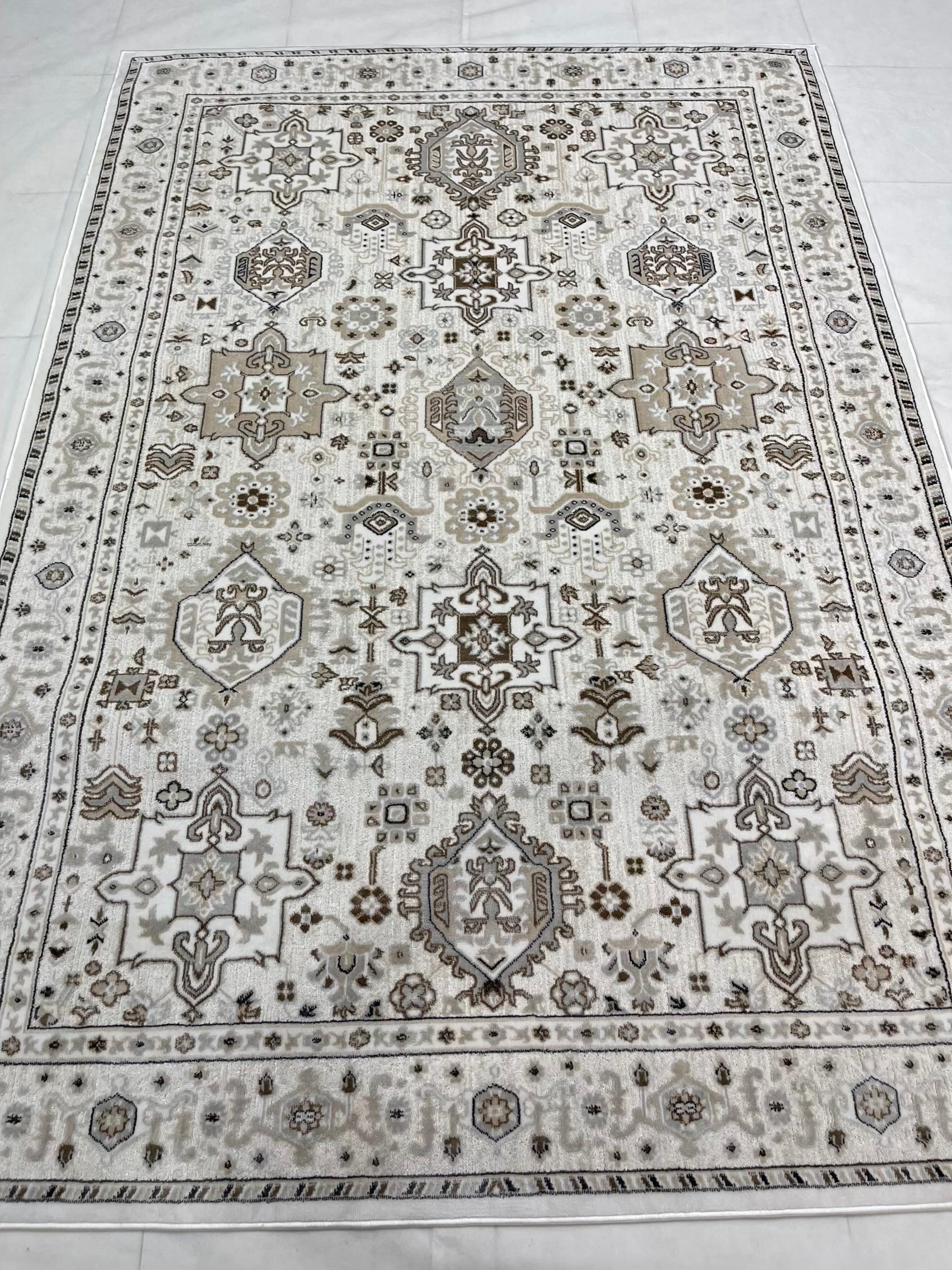 Modern Turkish Silk , Woven Back (Article-1306-Off white,Grey) Size : 5 ft width x 7.3 ft length