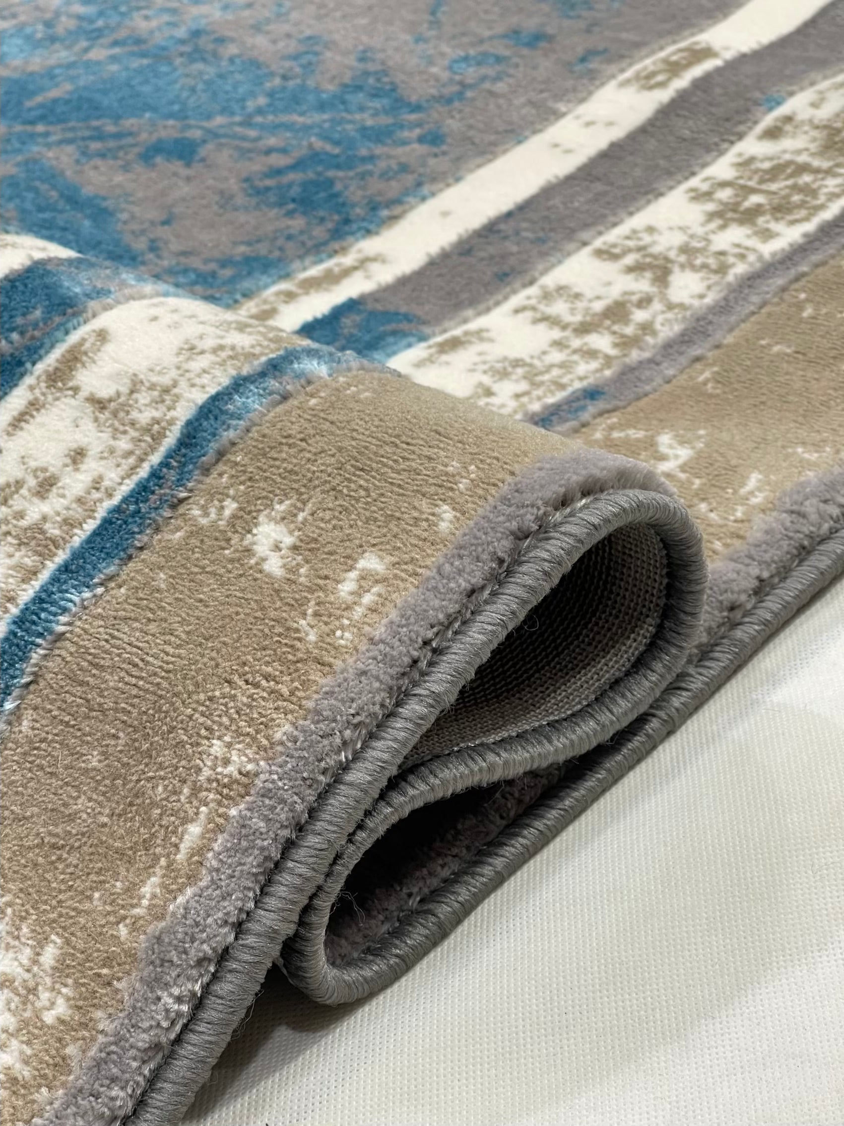 Pakistani Silk Woven Rug.(Article-1463-Grey , Feroze) Size : 5ft width x 7.3ft length (150cm x 220cm)