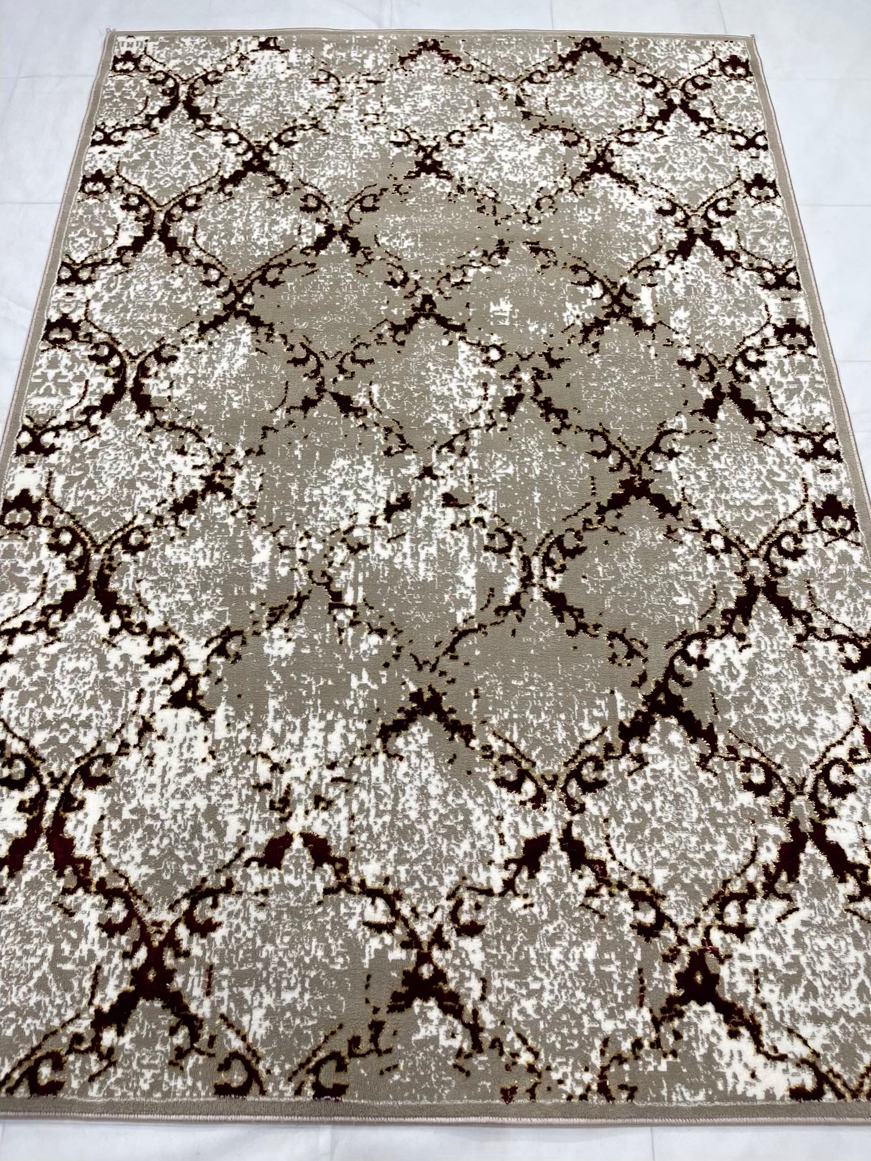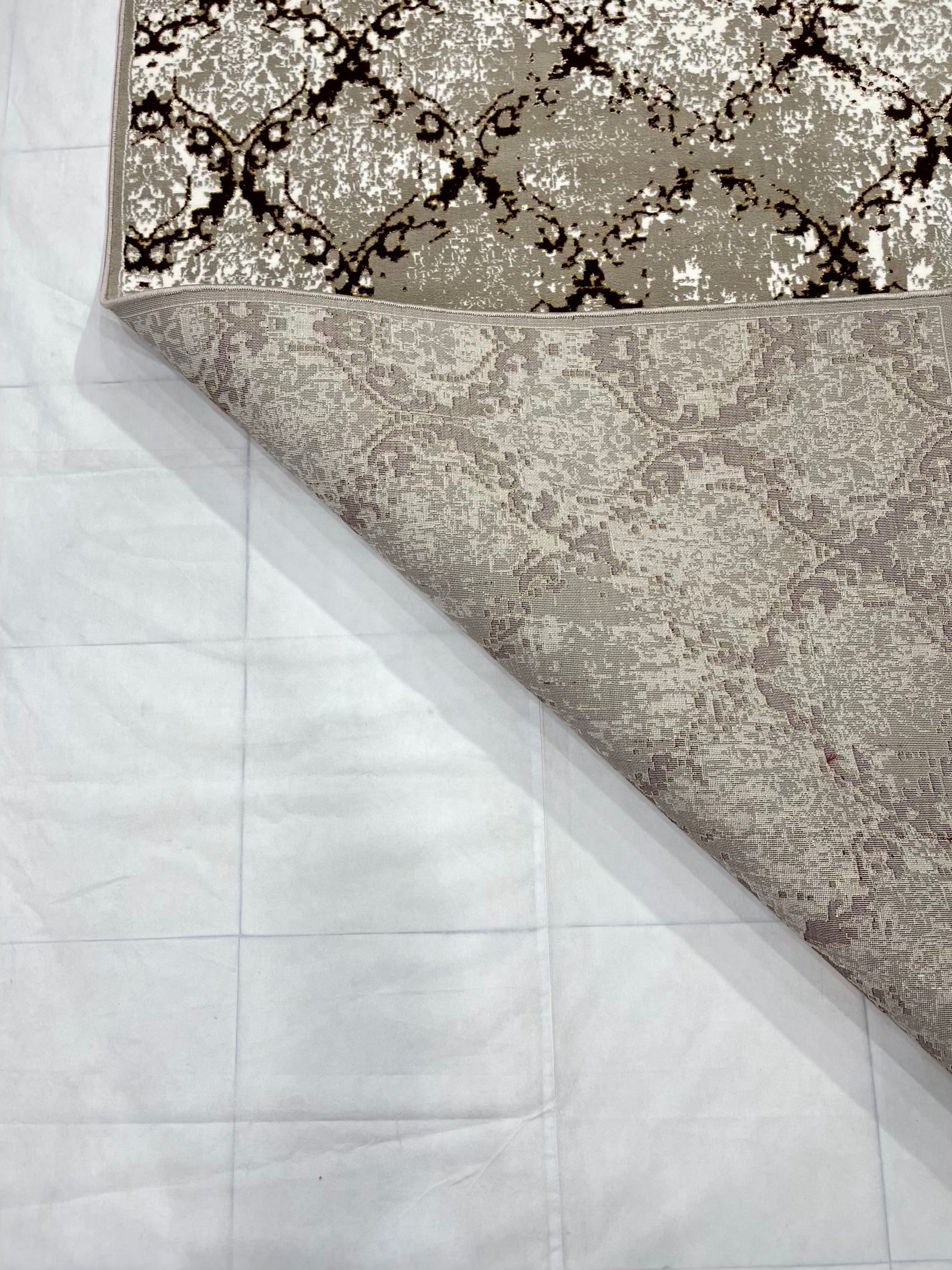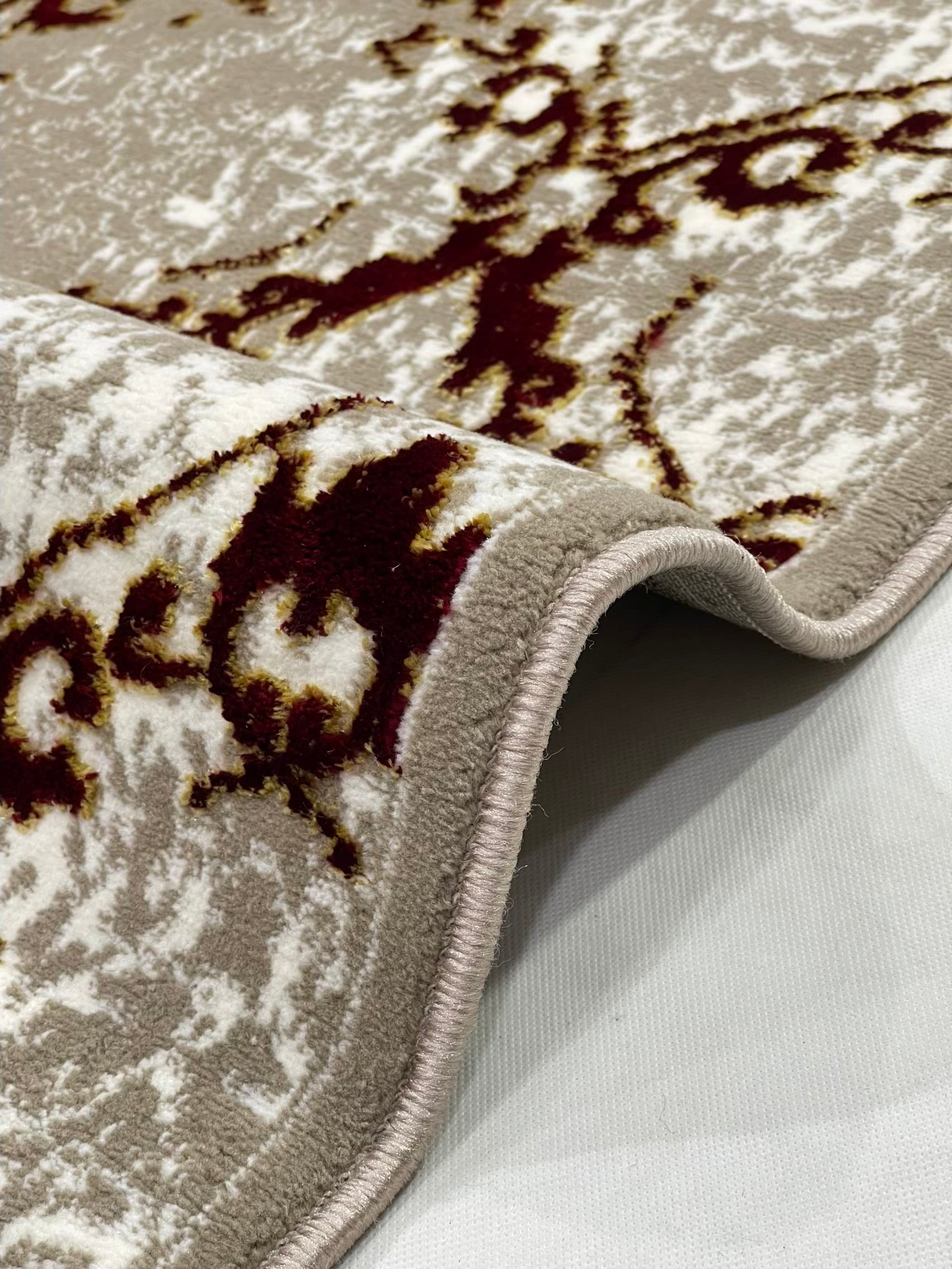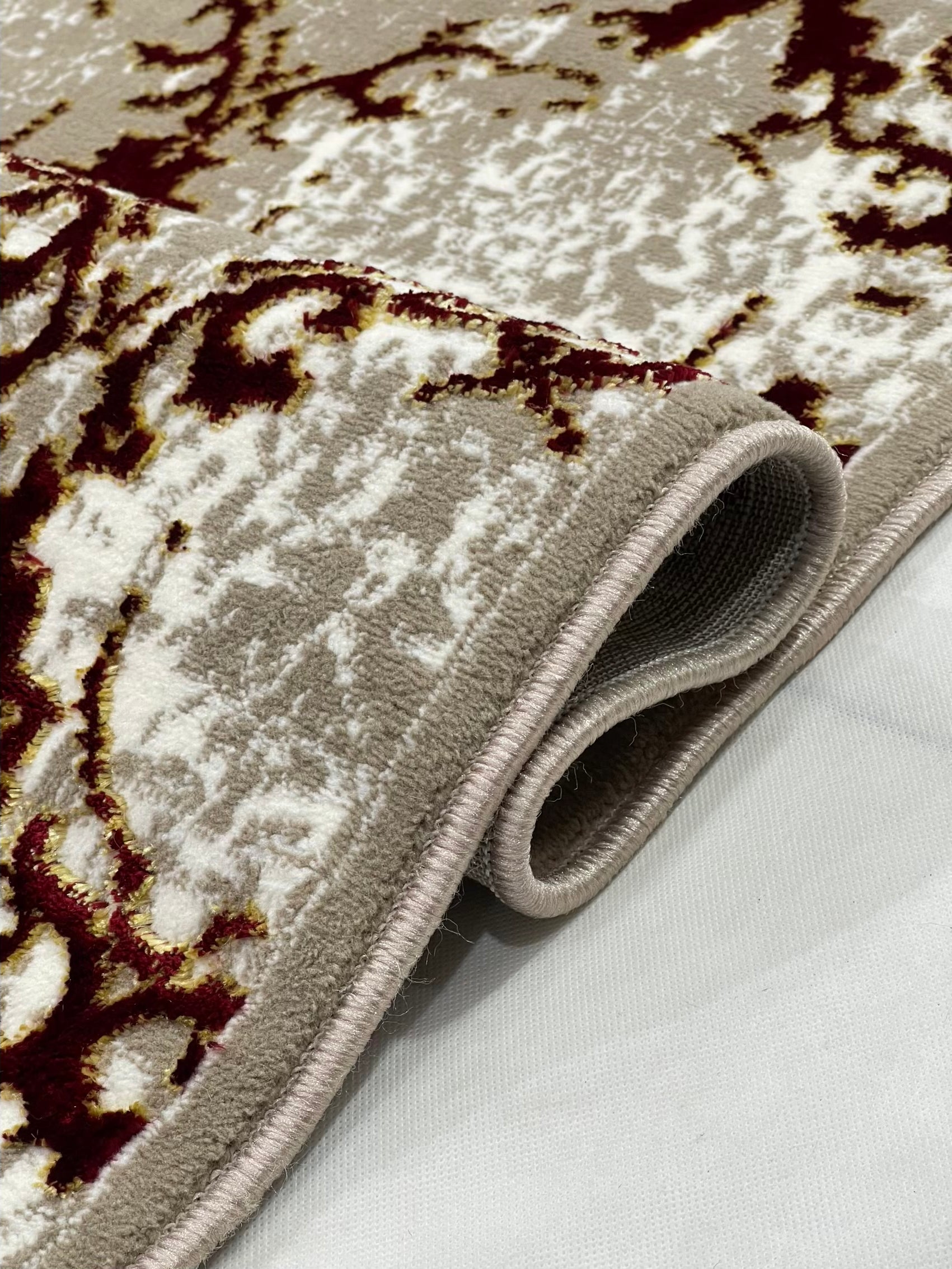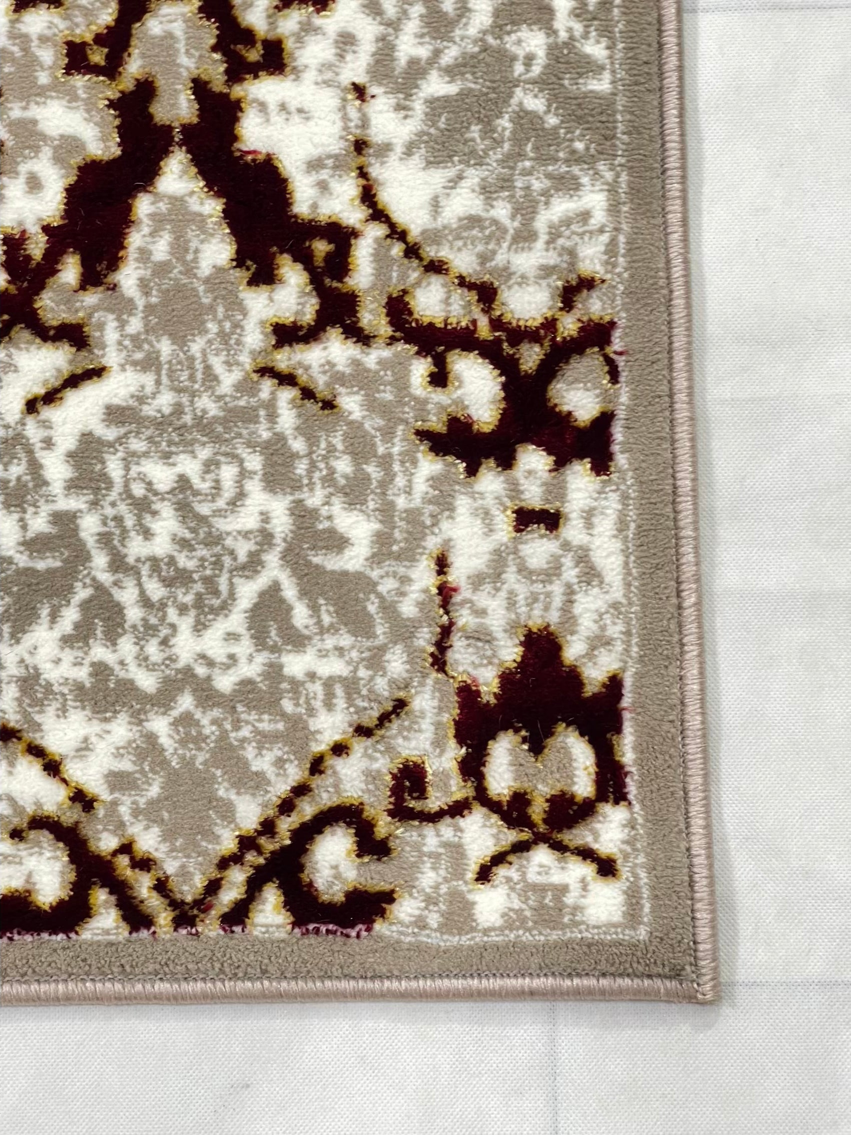 Pakistani Silk Woven Rug.(Article-1469-Light Beige , Red) Size : 5ft width x 7.3ft length (150cm x 220cm)