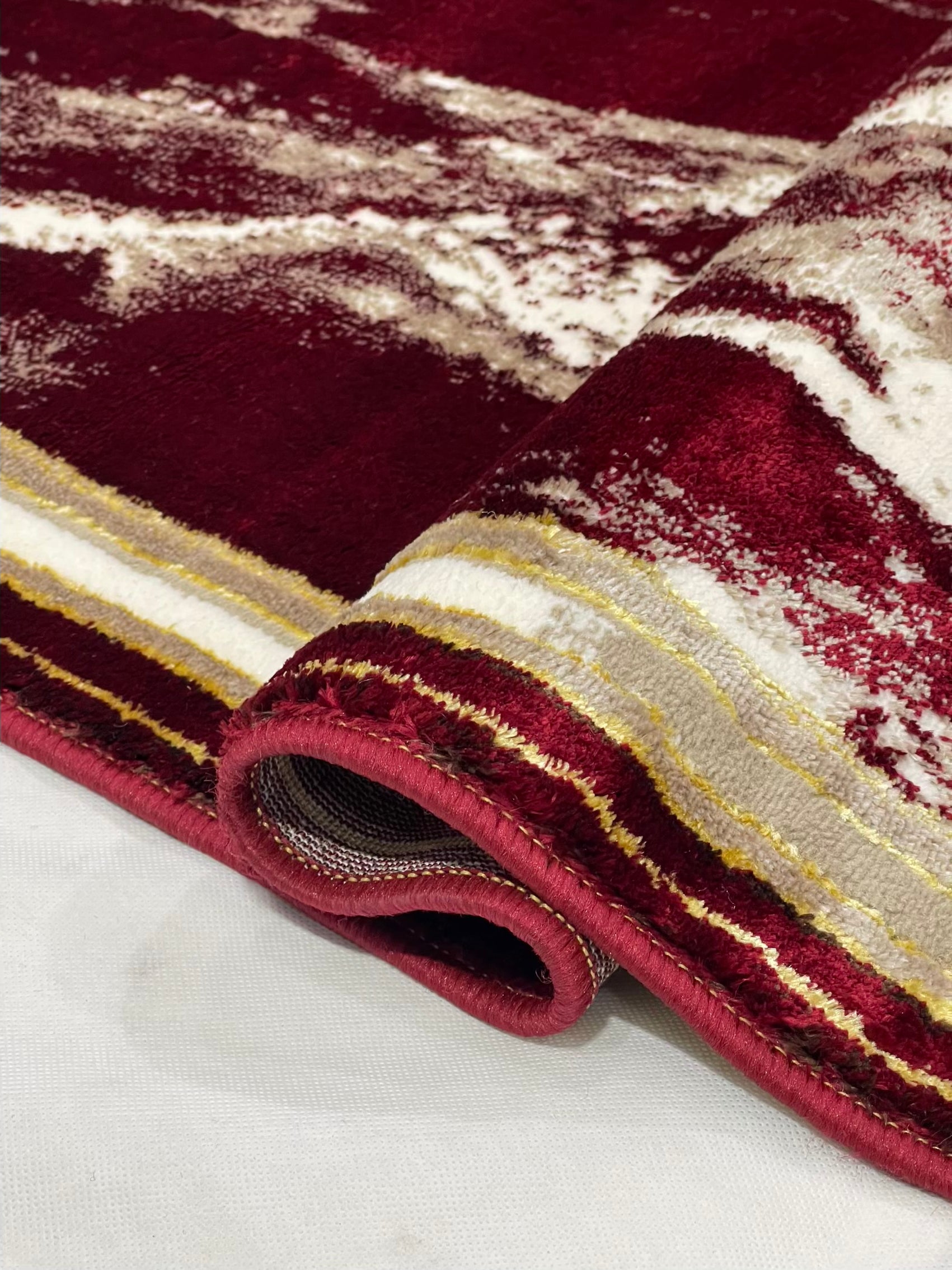 Pakistani Silk Woven Rug.(Article-1552-Red) Size : 4 ft width x 5.6 ft length