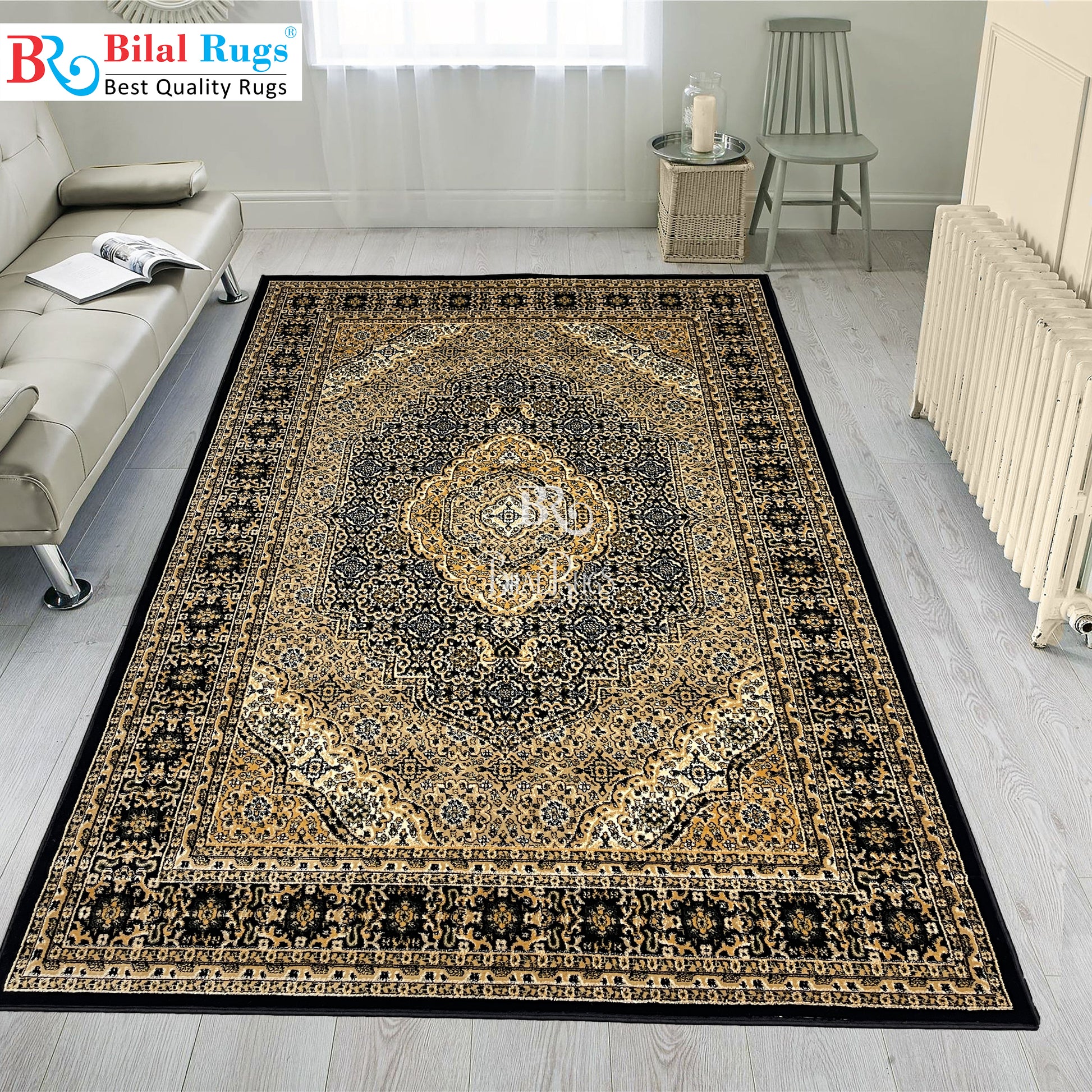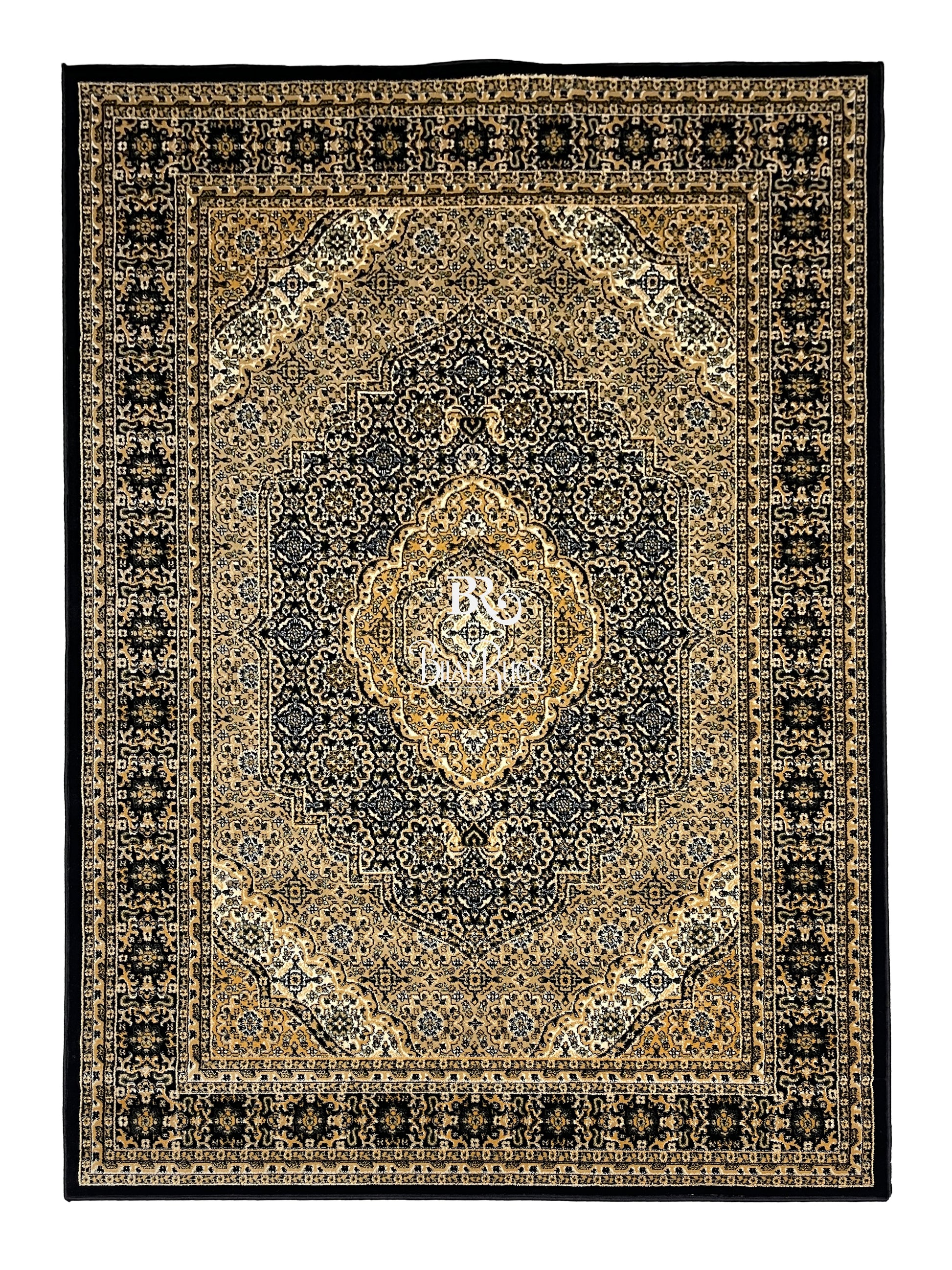 Persian polypropylene Rug,back woven(Article-99-Black) Size : 6.6 ft width x 9.6 ft length (200cm x 290cm)