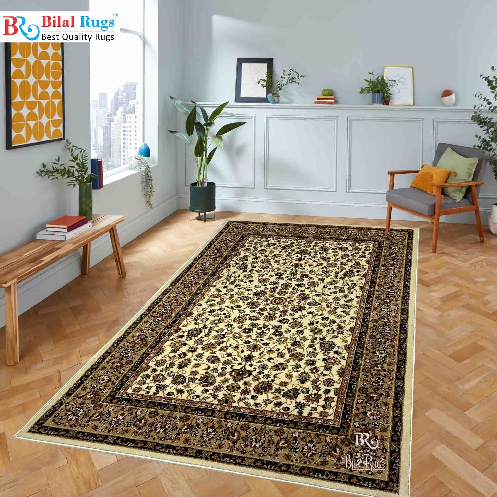 Persian Polypropylene Rug,back woven(Article-140-Off white) Size : 5ft width x 7.3ft length (150cm x 220cm)