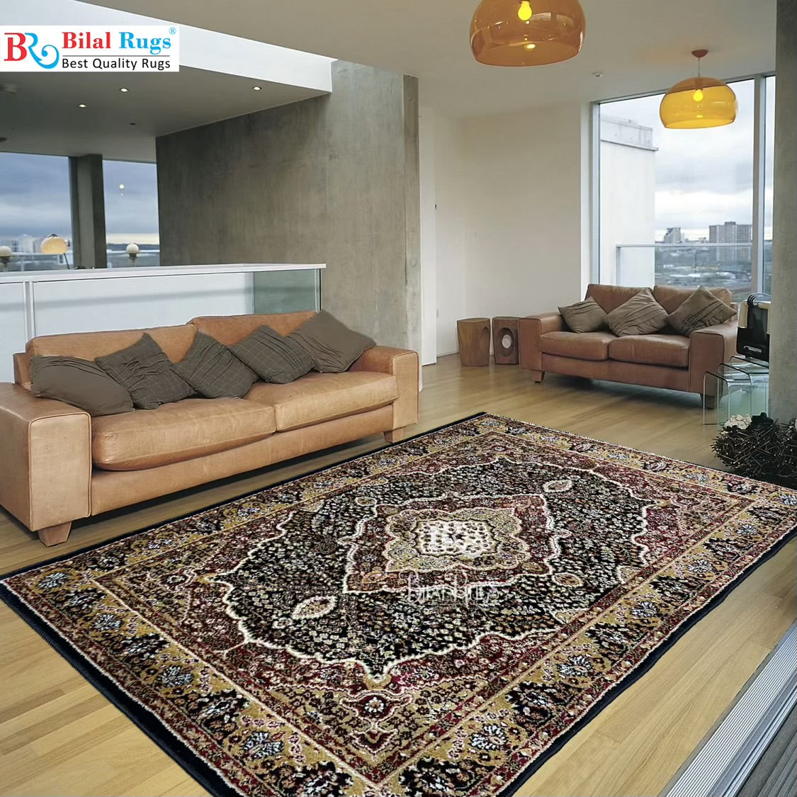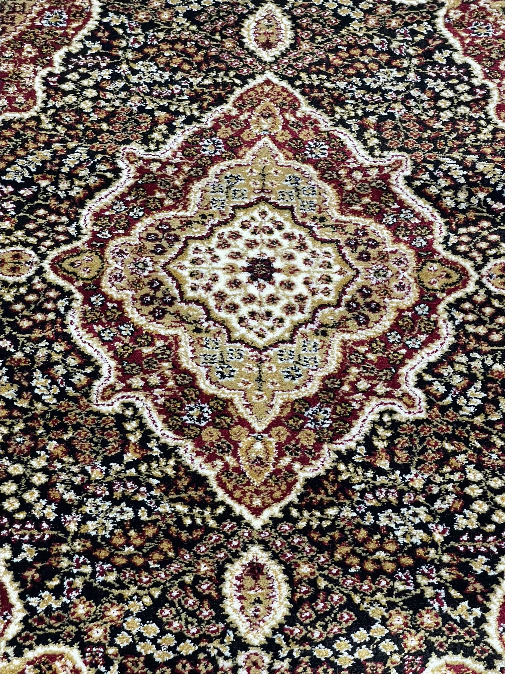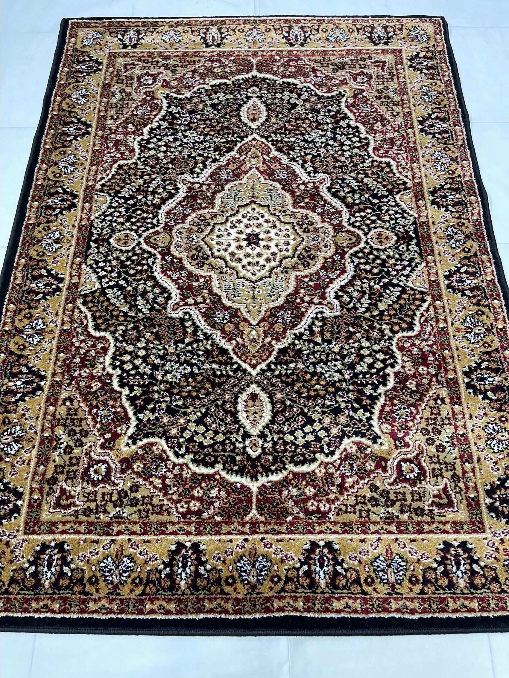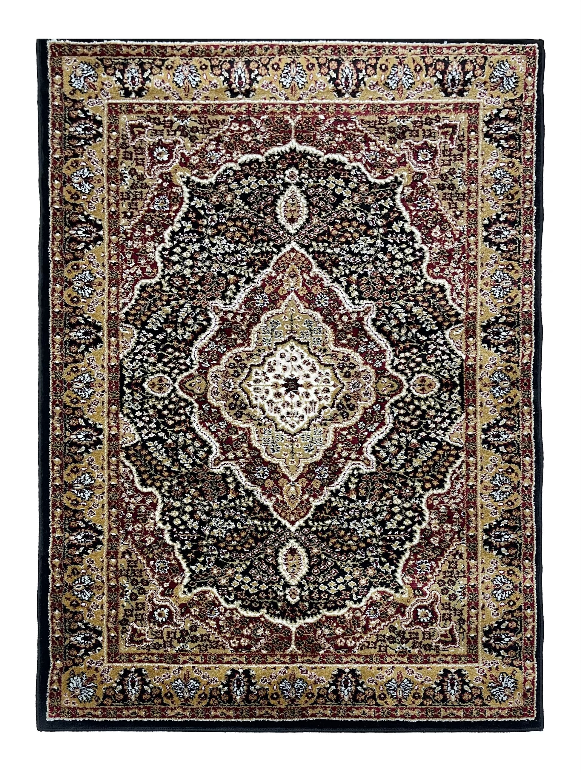 Persian Polypropylene Rug,Woven Back (Article-25-Black,Red) Size : 4 ft width x 5.6 ft length (120 cm x 170 cm)