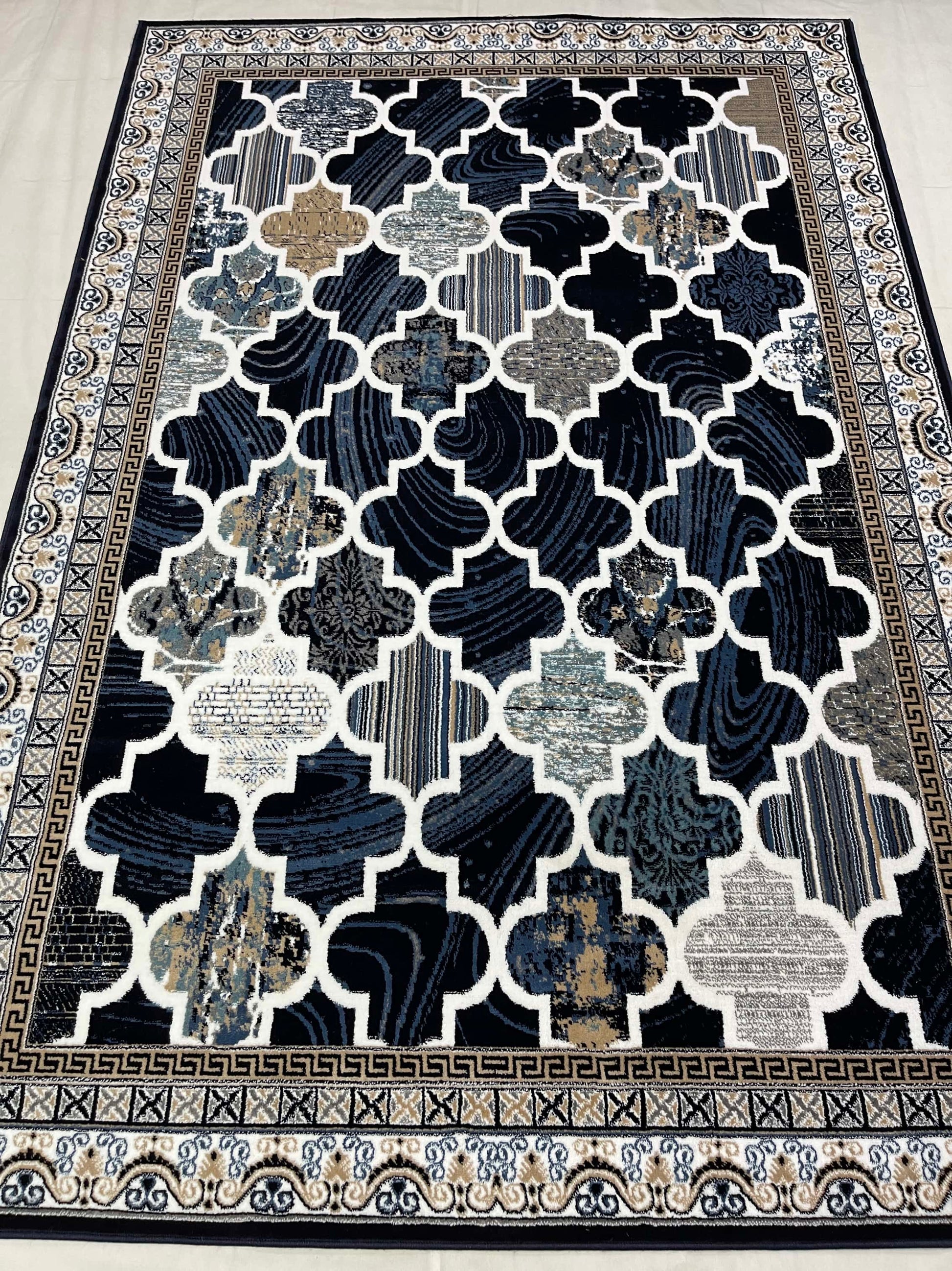 Modern polypropylene Rug,back woven(Article-5001-Blue) Size : 6.6 ft width x 9.6 ft length (200cm x 290cm)