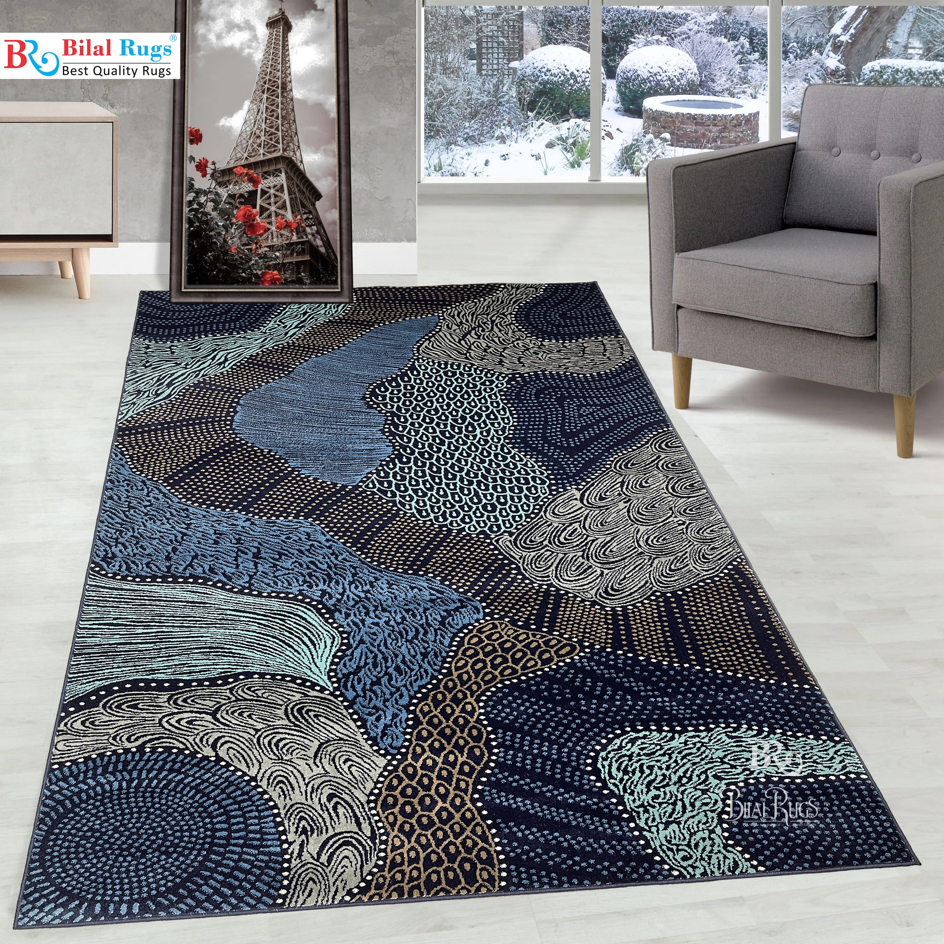 Modern polypropylene Rug,back woven(Article-125-Blue) Size : 6.6 ft width x 9.6 ft length (200cm x 290cm)