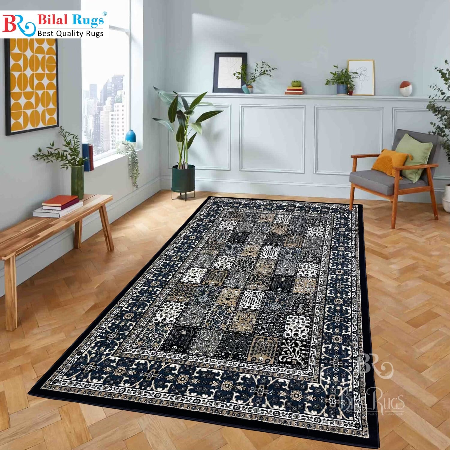 Persian polypropylene Rug,back woven(Article-42-Blue) Size : 6.6 ft width x 9.6 ft length (200cm x 290cm)
