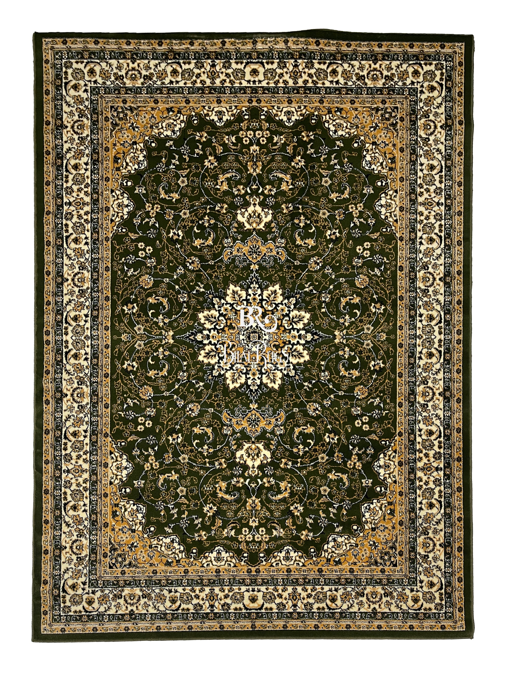 Persian polypropylene Rug,back woven(Article-19-Green) Size : 6.6 ft width x 9.6 ft length (200cm x 290cm)