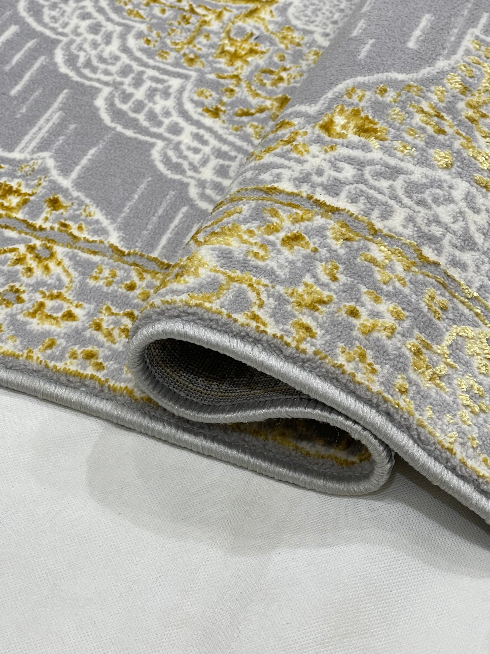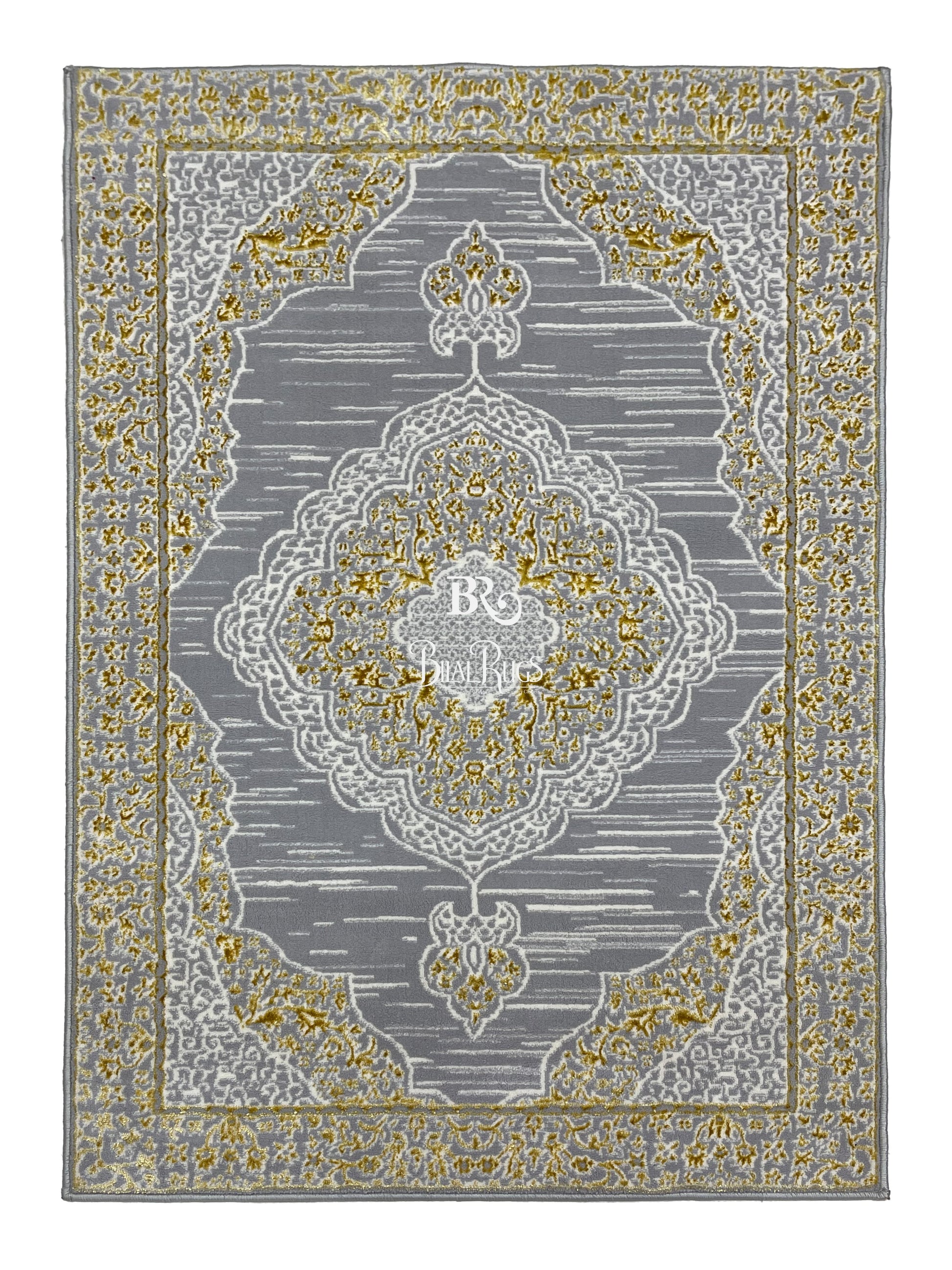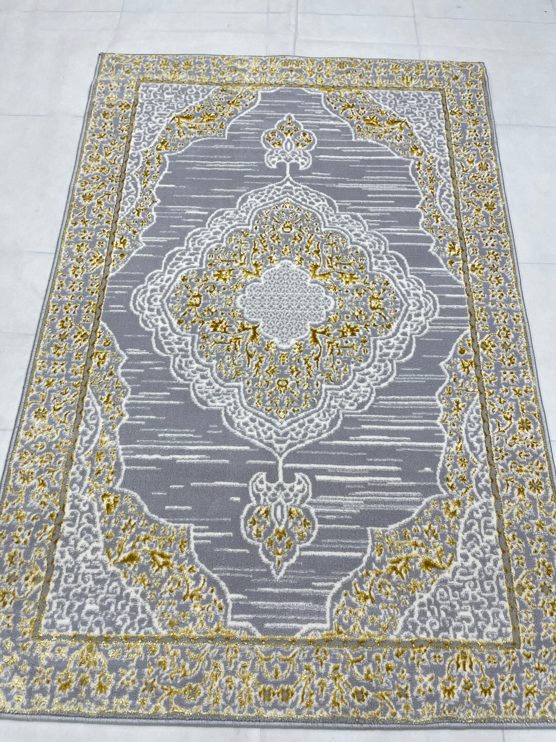 Polyester Silk Woven Rug.(Article-1455-Grey) Size : 3 ft width x 5 ft length ( 100cm x 150cm)