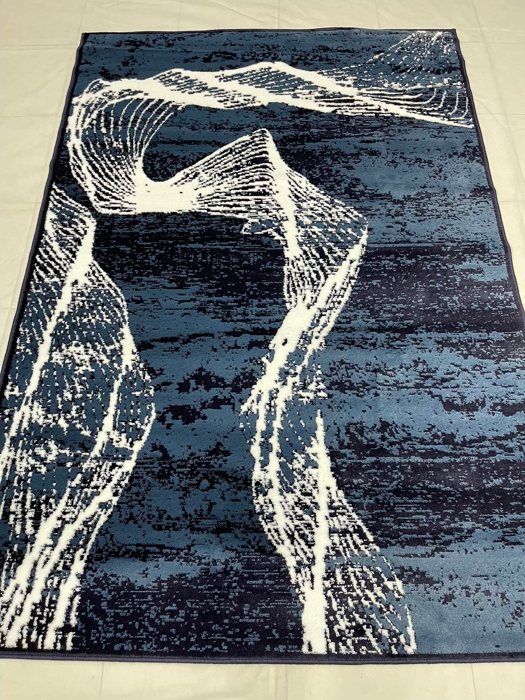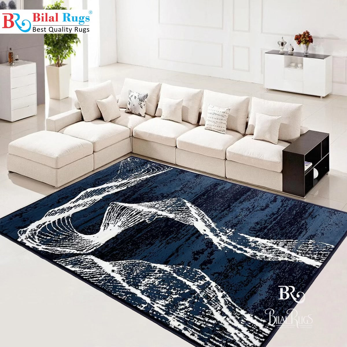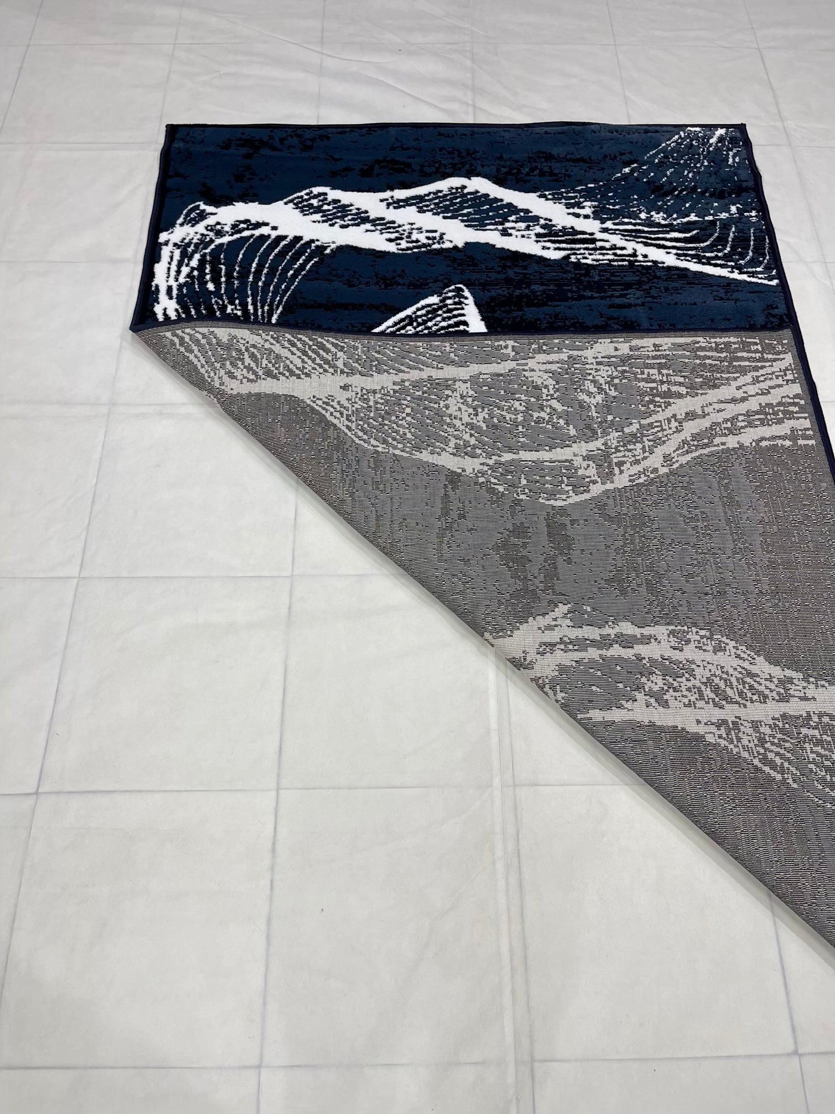 Modern polypropylene Rug,back woven(Article-1627-Blue) Size : 5ft width x 7.3ft length (150cm x 220cm)