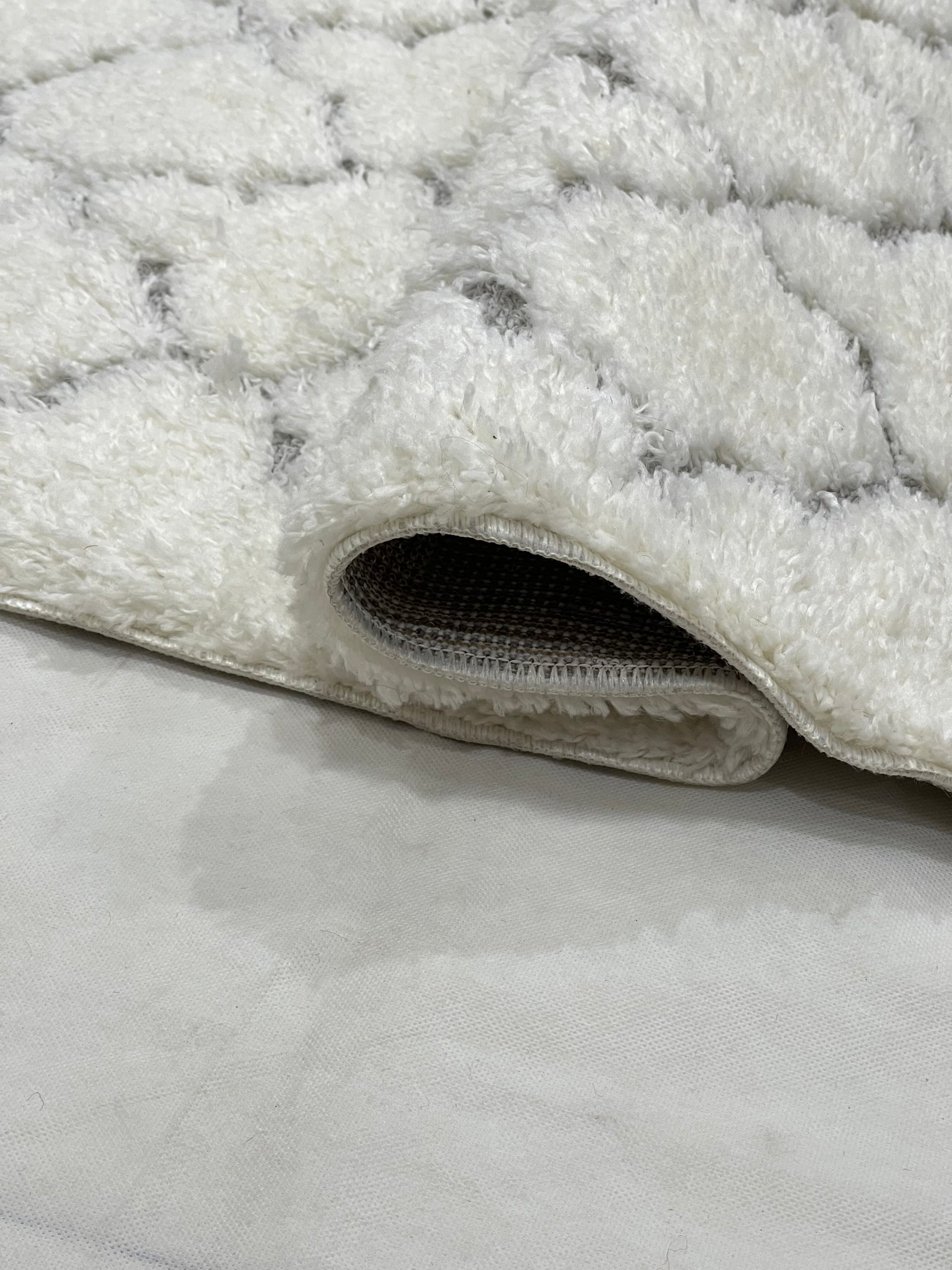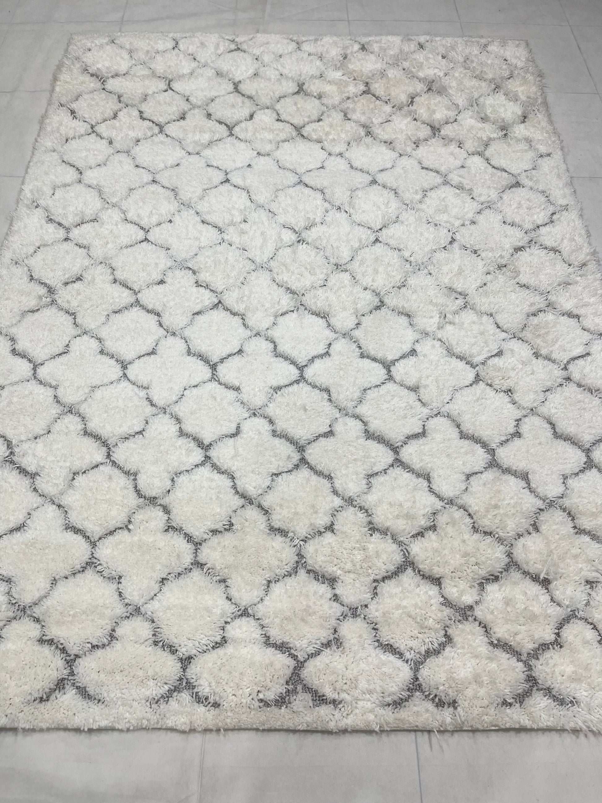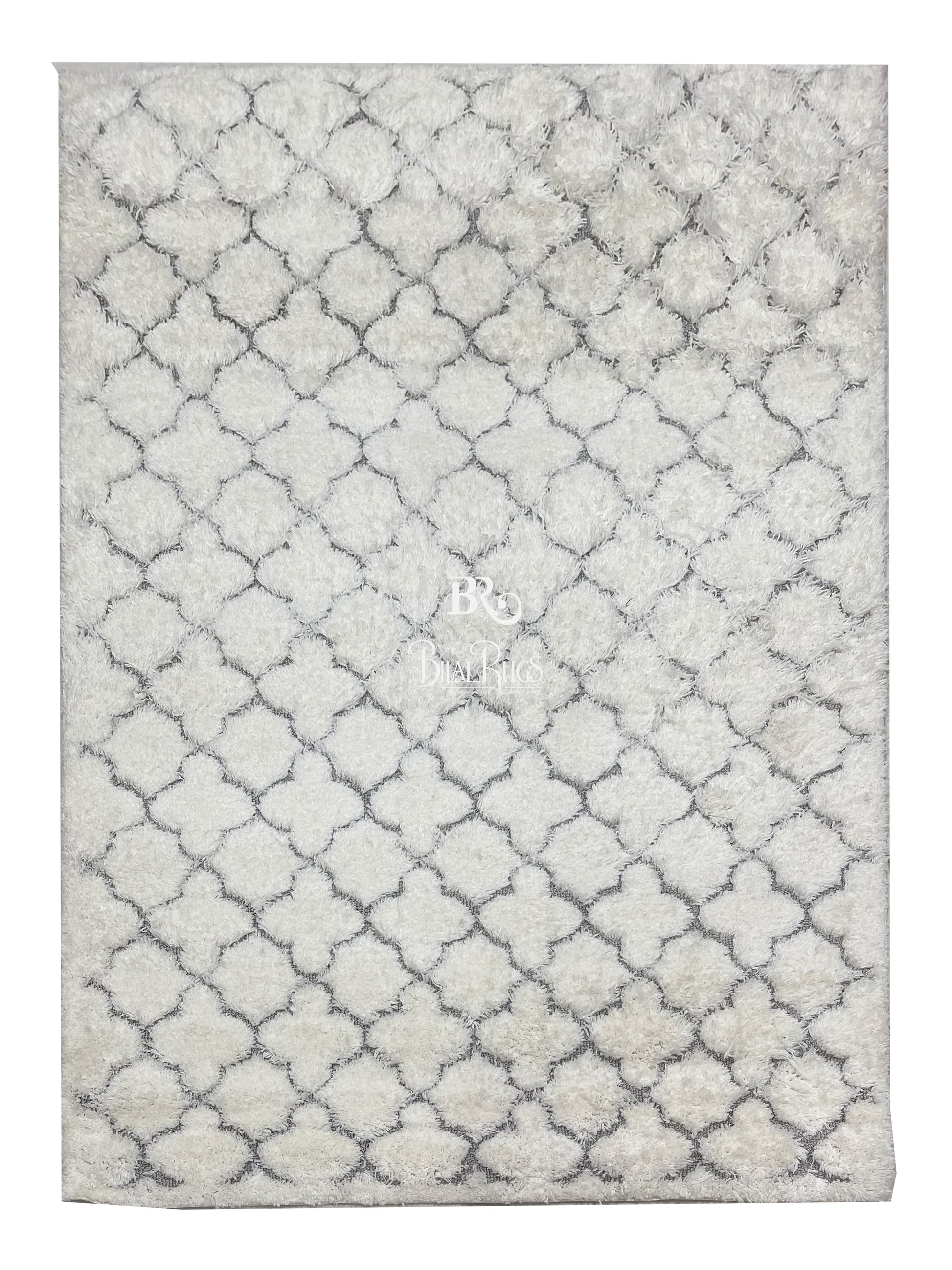 Turkish Shaggy Rug With Woven Back. Size : 5 Ft Width x 7.3 Ft Length (160cm x 220cm) Article-01-Off White