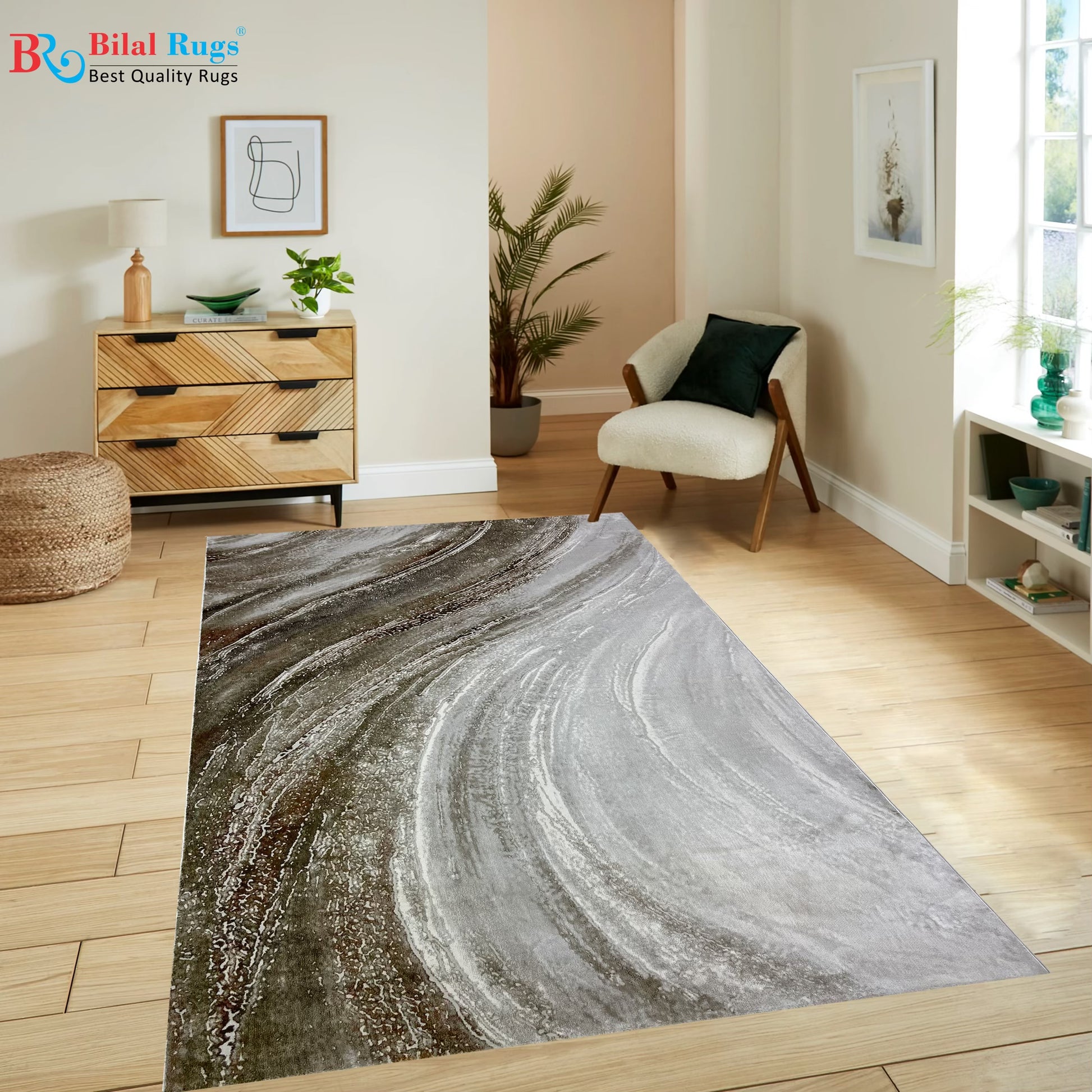 These rugs are made from a combination of silk and synthetic fibers. While the pile (visible surface) of the rug is made from silk, the foundation and backing are typically made from synthetic materials like polyester or cotton.