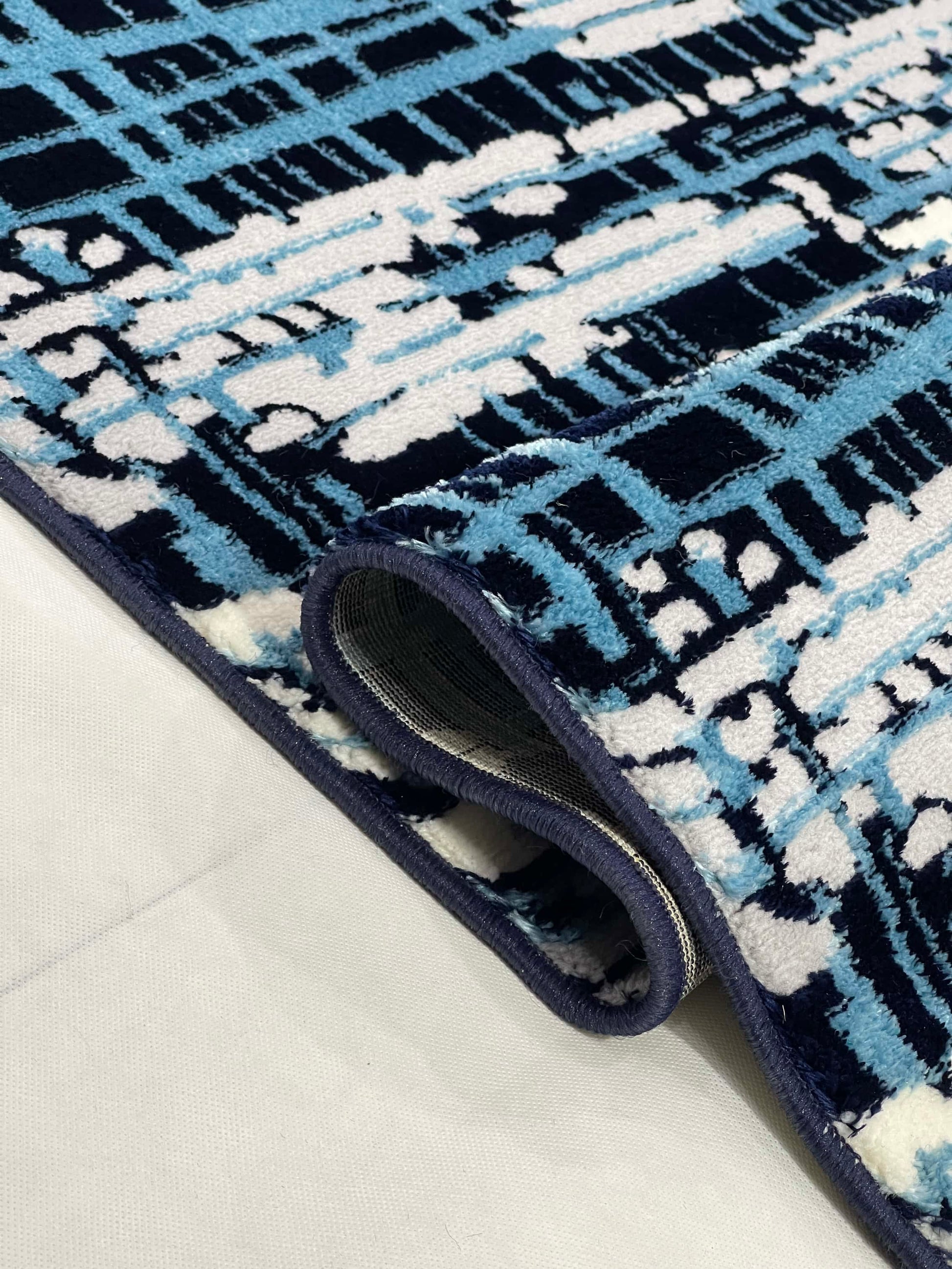 Polyester Silk.(Article-1603-Blue , offwhite) Size : 6.6 ft width x 9.6 ft length ( 200 cm x 290 cm)