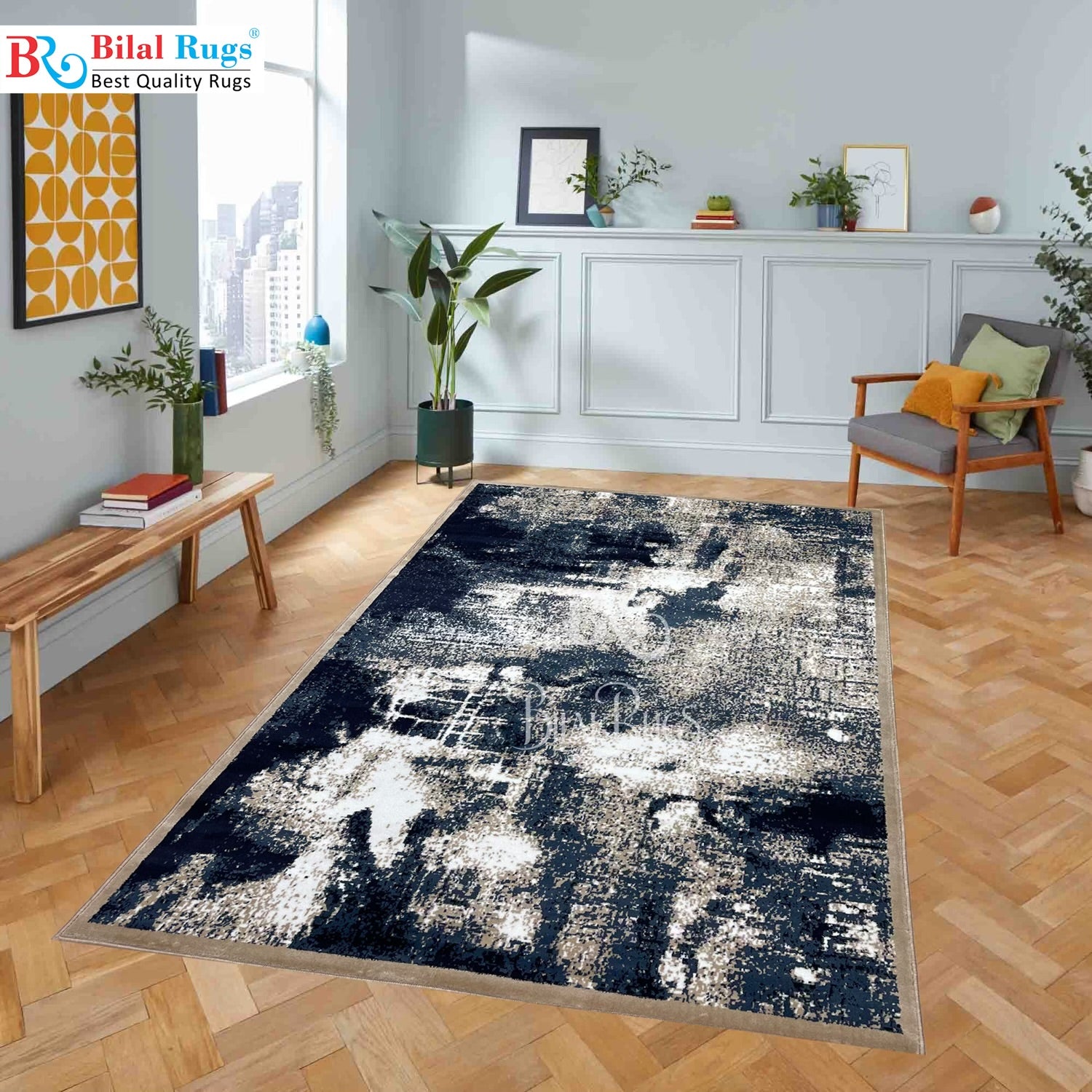Modern polypropylene Rug,back woven(Article-6777-Mink ) Size : 5ft width x 7.3ft length (150cm x 220cm)