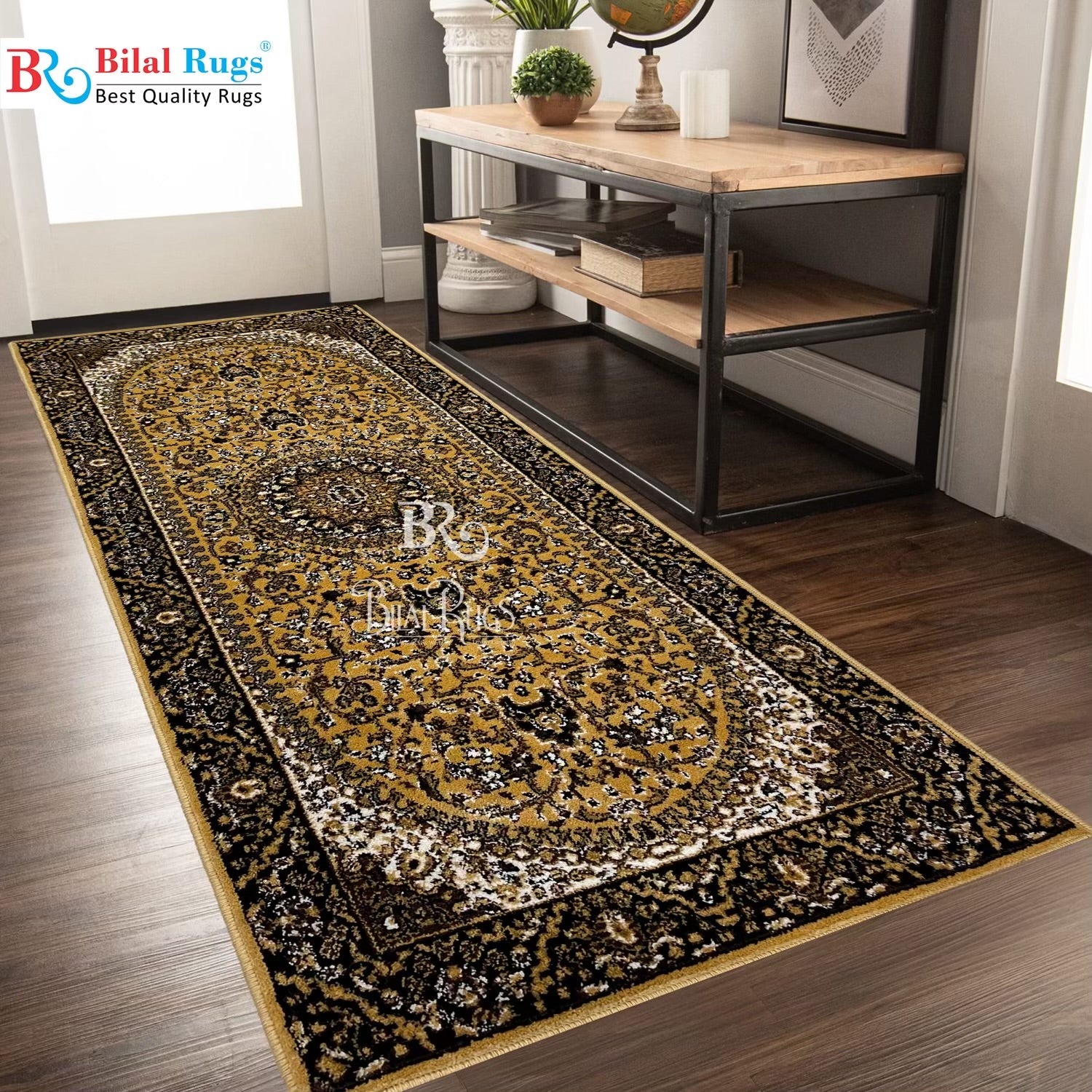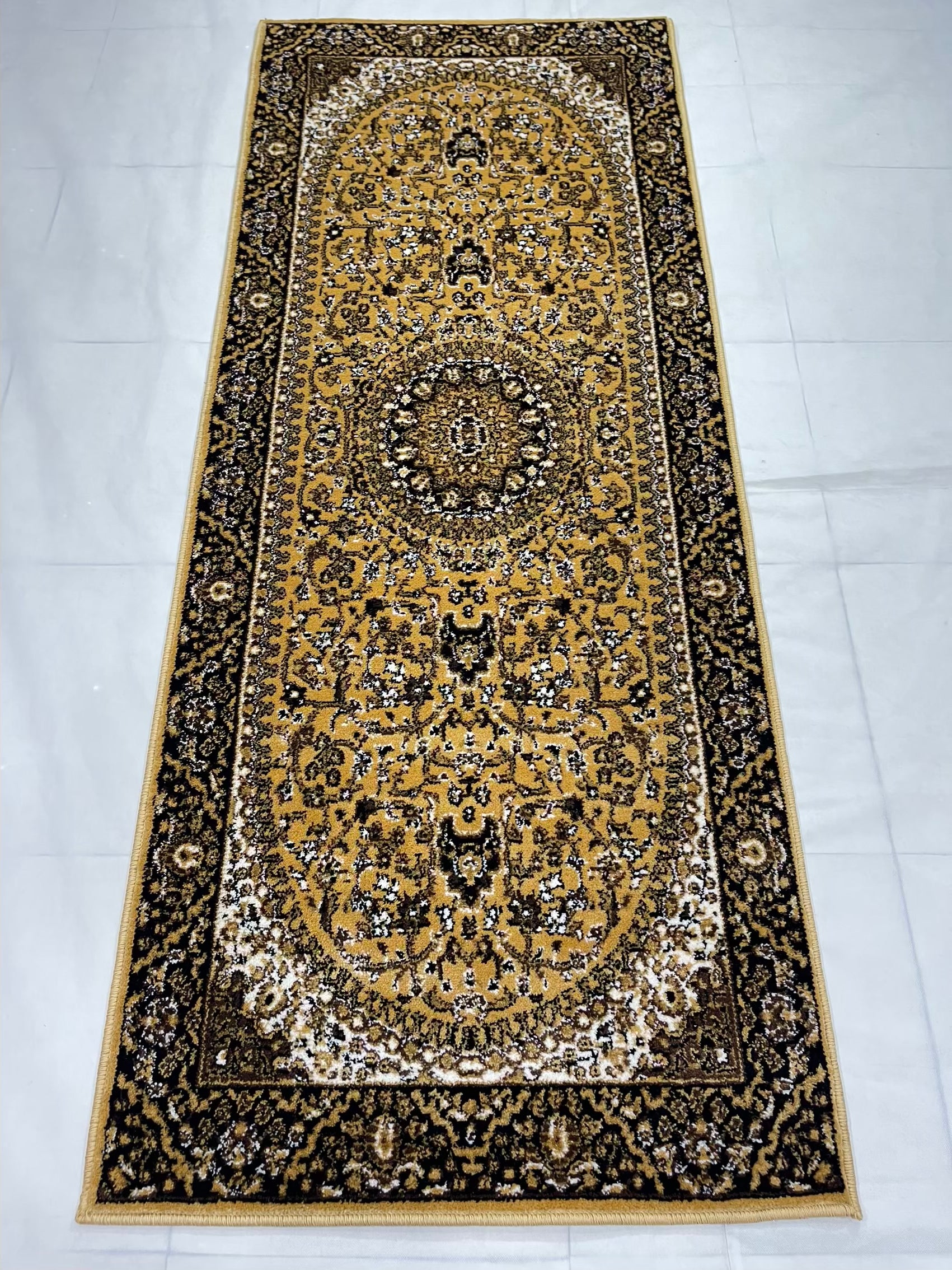 Gold Persian Polypropylene Woven Runner. Size : 2.6 ft width x 6.6 ft length (80 cm x 200 cm)